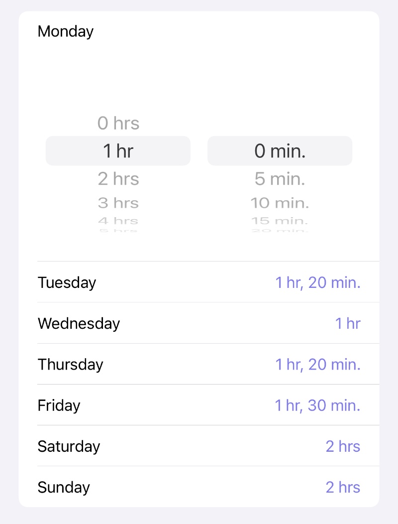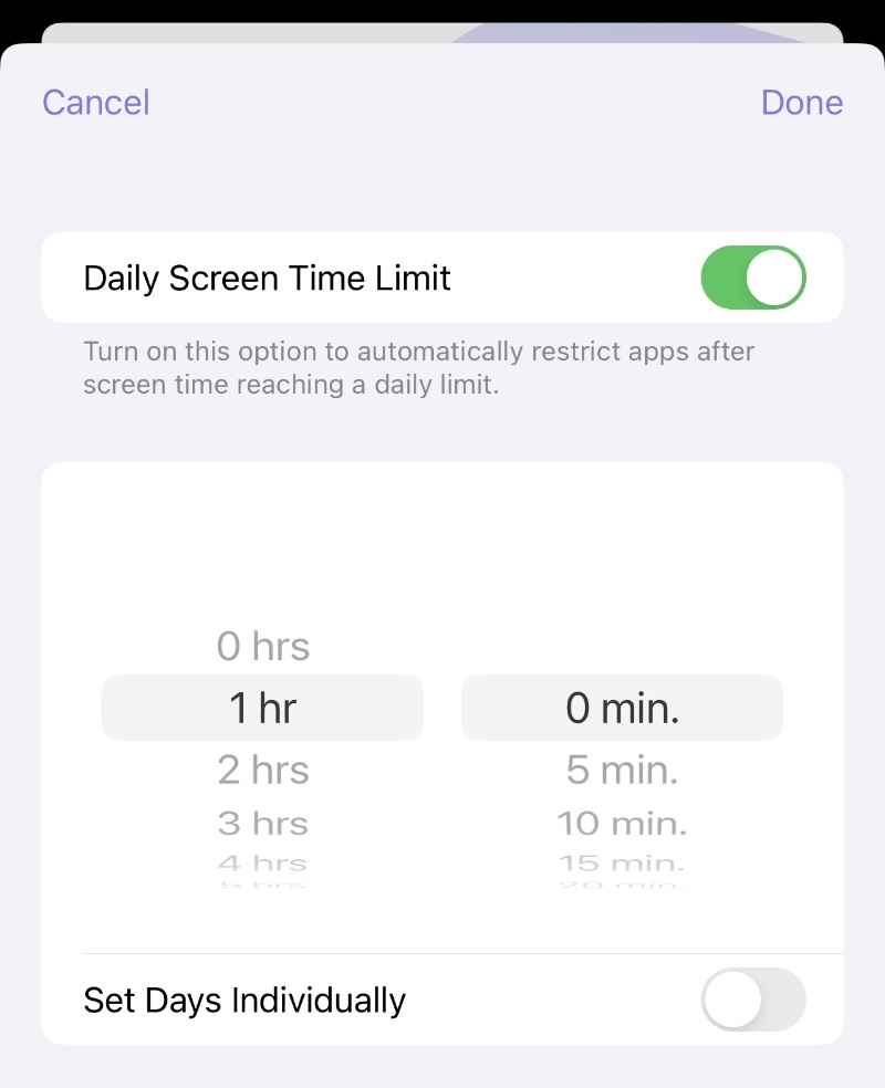 Tap "Set Days Individually" if you want to set different limits for different days.