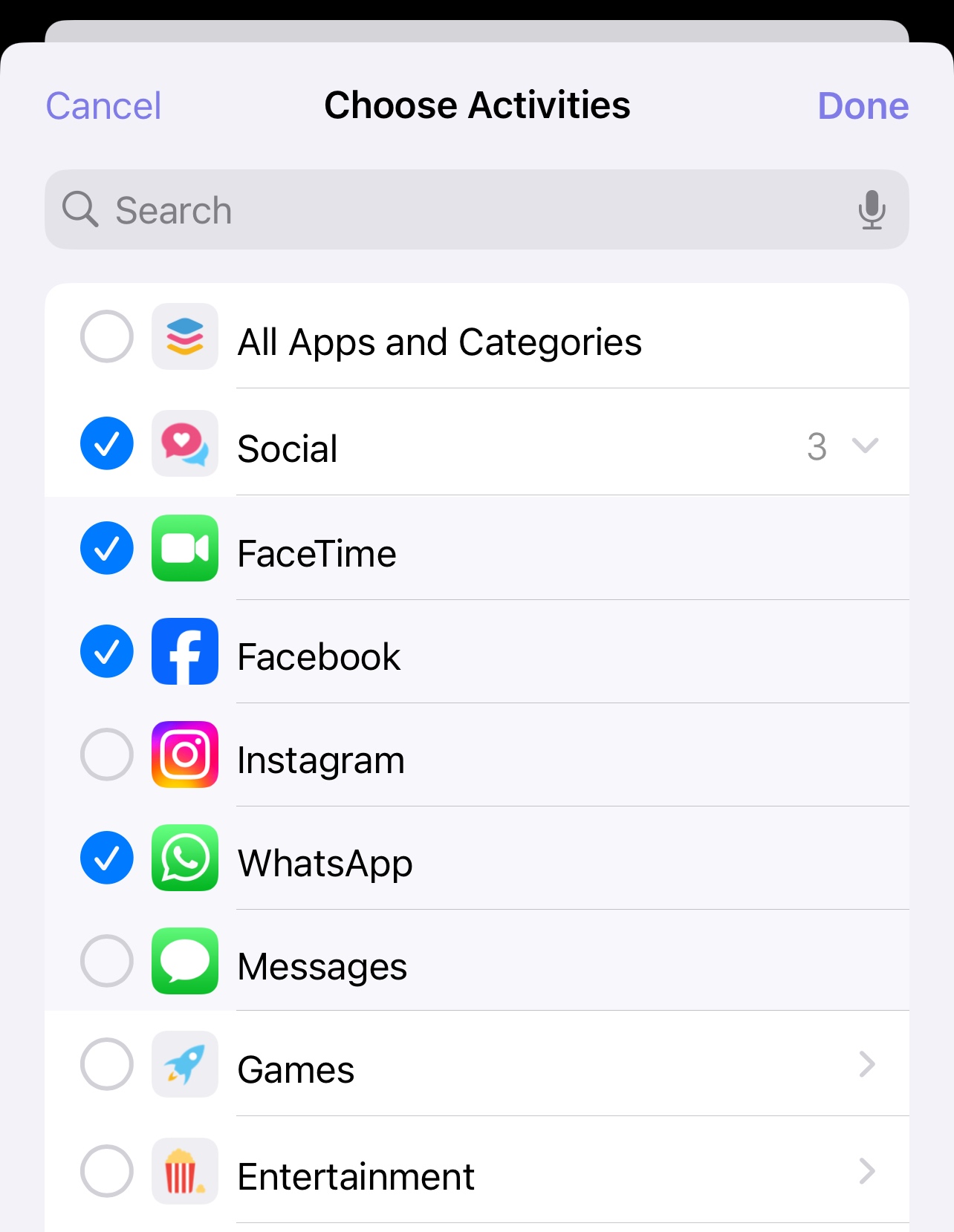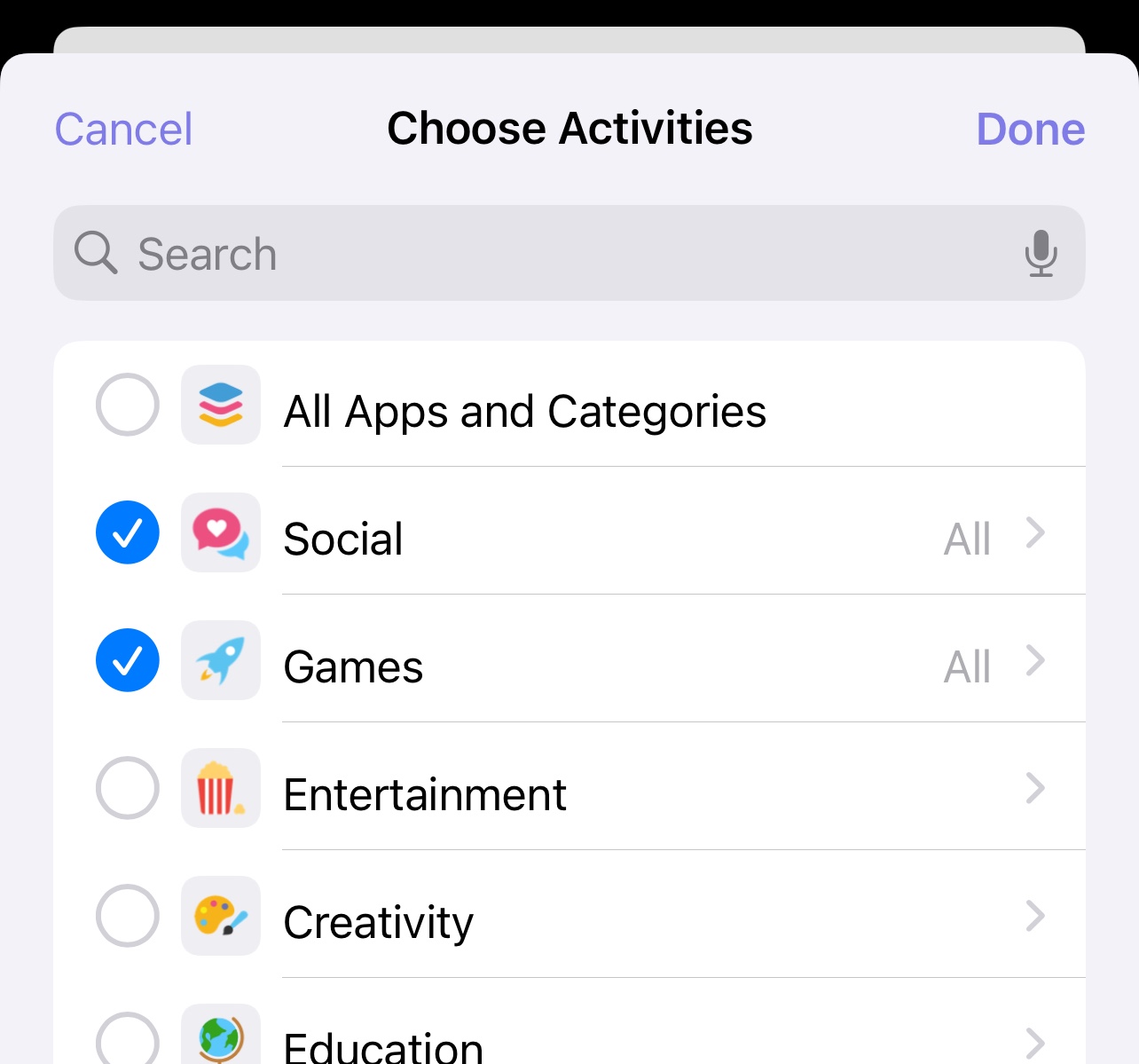 • Through “Choose Apps” you can select the app categories that need to be restricted.