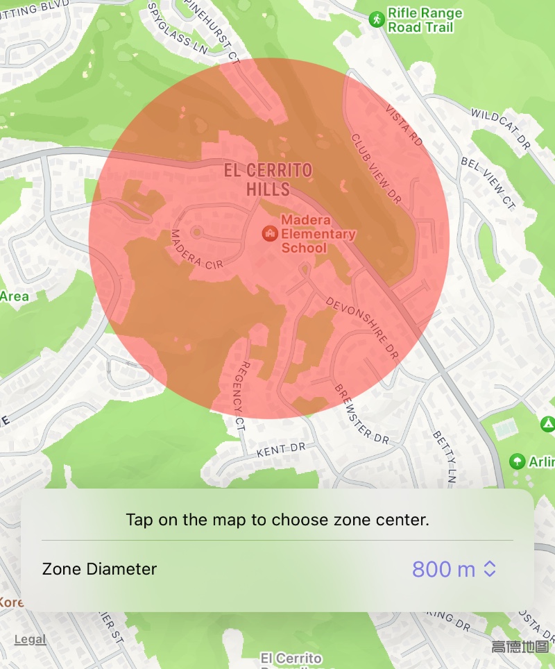 Then tap on the school on the map to set the center of the restricted area and select an appropriate diameter.